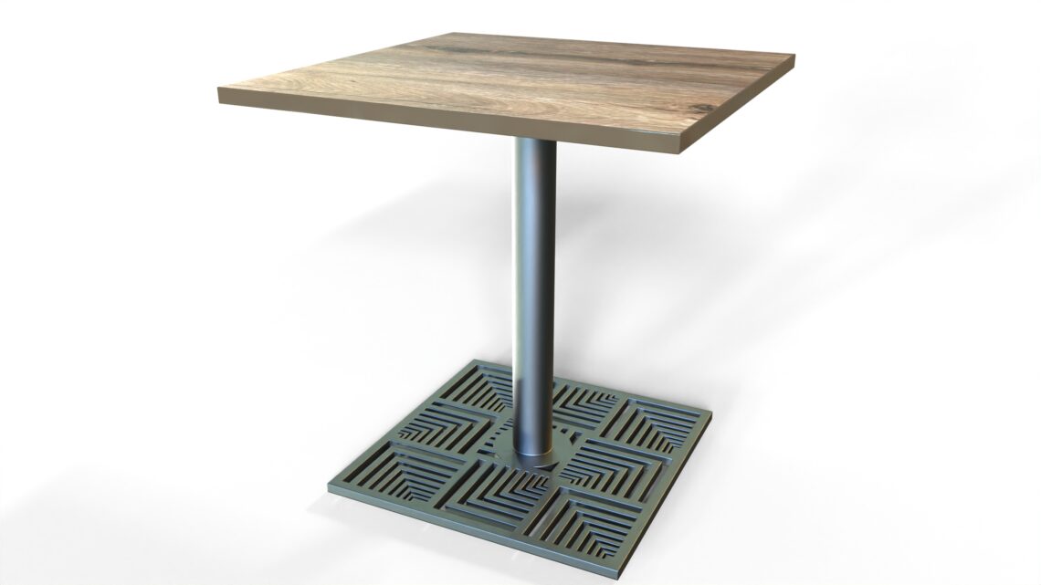La Base pedestal para mesa 55×55 Valeria, esta diseñada de hierro fundido para recibir una cubierta de 90cms., es una placa de metal de ½” de espesor, con poste de 2” calibre 16 y corte láser en diseño de la base terminada en pintura electro estática color negro, siendo durable y la solución perfecta para tu espacio.