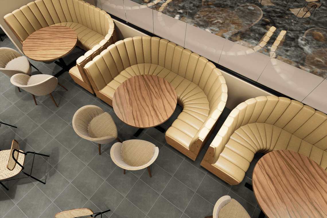 Cada uno de nuestros booths está diseñado para destacar tanto en estética como en funcionalidad. Utilizamos únicamente materiales de la más alta calidad, seleccionados por su durabilidad y belleza. Desde maderas finas hasta tapizados elegantes, cada detalle es cuidadosamente considerado para crear un ambiente sofisticado y acogedor en tu restaurante.