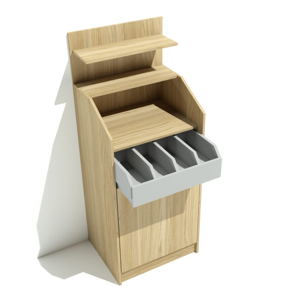 Con compartimentos bien distribuidos para guardar utensilios, servilletas, y otros elementos esenciales, la Estación de Meseros 06 permite a los meseros mantenerse organizados y brindar un servicio de calidad de manera eficiente.