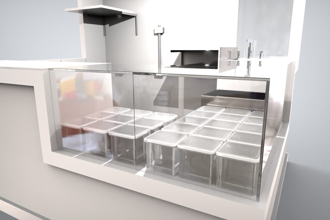 En un negocio de helados, la visibilidad del producto es esencial. Este kiosco está diseñado para ofrecer una exhibición atractiva y accesible de los sabores disponibles, paletas artesanales, toppings y promociones especiales. La vitrina frontal cuenta con iluminación LED y cristal templado que permite al cliente ver claramente los productos, invitándolo a comprar por impulso o a probar nuevas combinaciones.