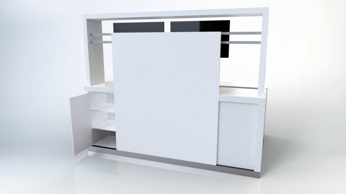 Uno de los grandes retos en el diseño de kioscos es el uso eficiente del espacio. En este modelo de kiosco de nevería, se ha logrado una distribución estratégica de cada módulo para garantizar: