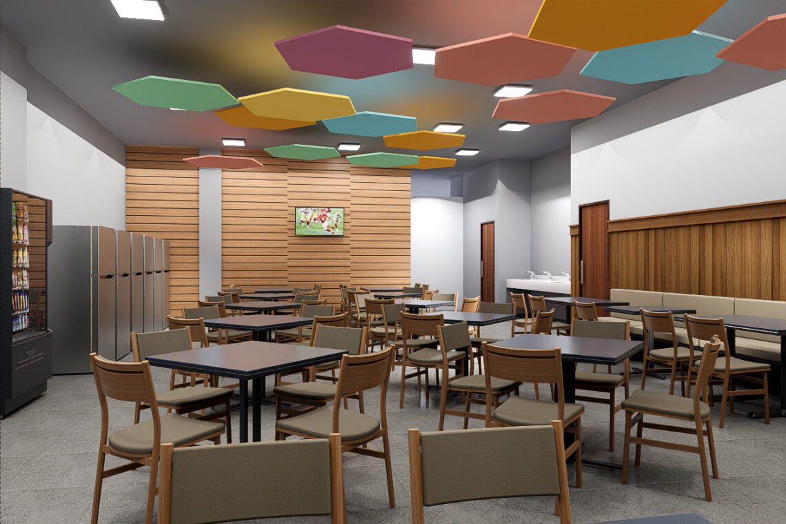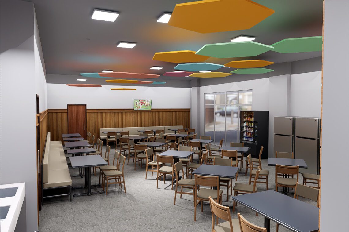 Las estructuras metálicas cuentan con recubrimientos anticorrosivos; las superficies son fáciles de limpiar, resistentes a golpes, humedad y altas temperaturas. El resultado es un comedor funcional, de larga vida útil y fácil mantenimiento.