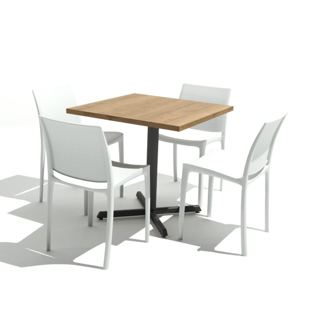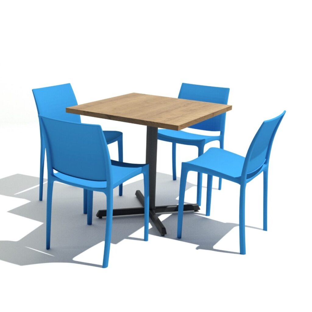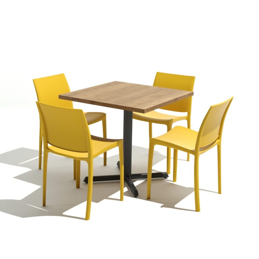 El respaldo tiene una curvatura ideal para apoyar la espalda, y el asiento está diseñado para ofrecer confort durante estancias prolongadas. Esto la convierte en una silla no solo funcional, sino también cómoda, un aspecto clave para fidelizar a tus clientes o mejorar el ambiente laboral en comedores empresariales.